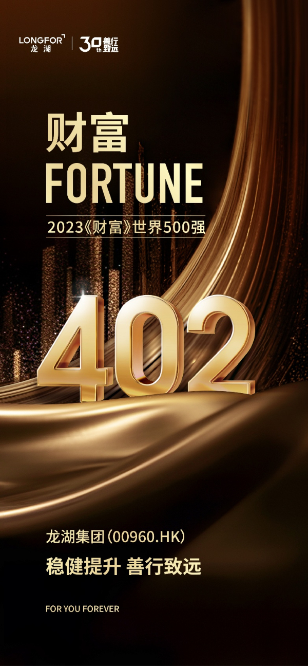 8月2日,2023年《财富》世界500强排行榜发布,凭借2022年收入、利润的稳健增长,龙湖集团连续三年入围榜单,排名持续提升第402位。