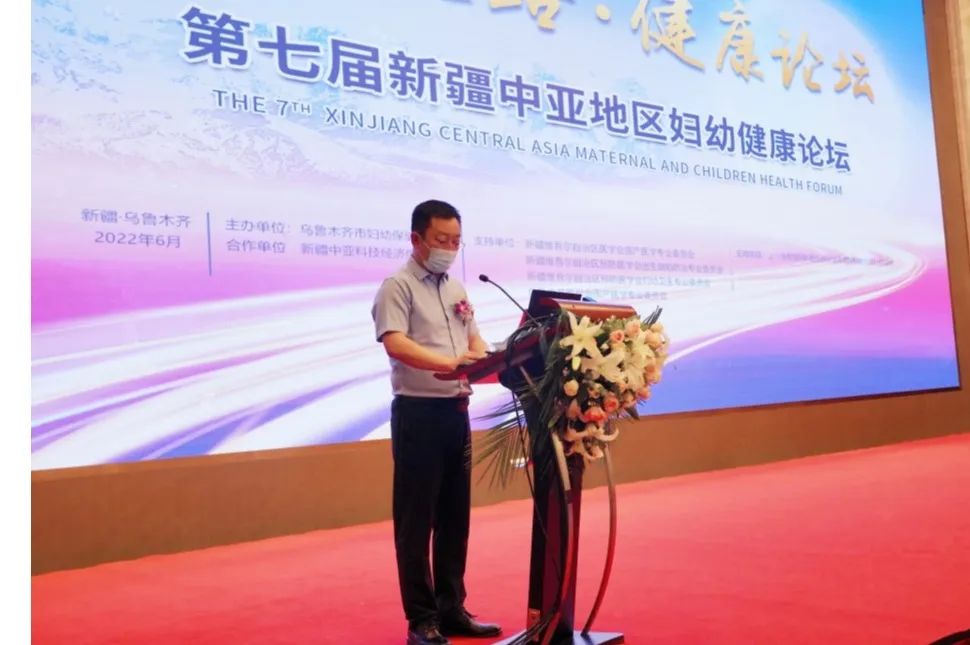 自治区卫生健康委员会妇幼处副处长玉米提·塔西甫拉提、乌鲁木齐市卫生健康委副主任龙浩出席会议并致辞。 玉米提·塔西甫拉提副处长强调,做好新疆妇幼健康工作,对于推进健康新疆建设、储备人力资源、提升新疆乃至国家综合实力具有重大的历史和现实意义。近年来在各级党委、 政府的高度重视和大力扶持下得到长足发展,全区孕产妇、婴儿和5岁以下儿童死亡率等妇幼健康领域的核心指标均取得了历史最好成绩,全区妇女儿童健康水平迈上新台阶。我们要坚决贯彻落实2022年全国妇幼健康工作电视电话会议提出的四个“必须坚持”要求,紧紧抓住国家向西开放和“一带一路”战略契机,全面推进丝绸之路经济带核心区医疗服务中心建设,不断创新合作模式,开拓合作领域,推动新疆与周边国家、省市在妇幼健康领域的务实合作,互学互鉴,互利共赢和共同发展。另外,还要切实加强妇幼保健管理,健全自治区、地、县、乡、村三级妇幼健康服务体系。持续开展妇幼保健机构绩效考核工作,推动各级妇幼保健机构标准化和规范化发展,促进新疆卫生健康事业更好更快发展。 乌鲁木齐市卫生健康委 副主任龙浩