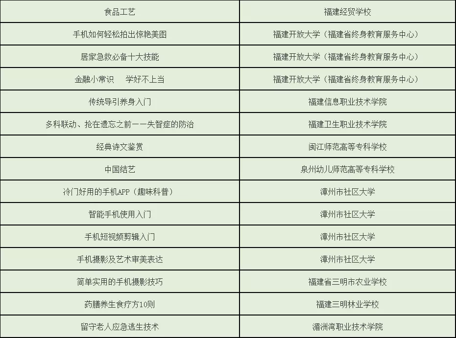 央广网福州10月5日消息(记者罗晓英) 近日,教育部职业教育与成人教育司发布《关于公布“智慧助老”优质工作案例教育培训项目及课程资源第二批推介名单的公告》,确定了“智慧助老”优质工作案例(59个)、优质教育培训项目(70个)和优质课程资源(169门)为第二批推介名单,福建省共有24个项目被教育部推介,入选数量位居全国第四。 其中,“智慧助老”优质工作案例中,《“三轮驱动模式”赋能福州市老年教育发展》等4个案例入选。 入选“智慧助老”优质工作案例(福建) “智慧助老”优质教育培训项目中,漳州社区大学的《智慧生活你我他》等5个项目入选。 入选“智慧助老”优质教育培训项目(福建) 福建经贸学校的《食品工艺》等15个课程入选“智慧助老”优质课程资源。 入选“智慧助老”优质课程资源(福建) 教育部要求各地各有关单位提高站位,因地制宜,主动作为,加强“智慧助老”优质工作案例、教育培训项目及课程资源等成果的宣传推广,创新举措积极扩大老年教育资源共建共享,多形式多途径开展惠及老年人的智能技术应用培训,助力解决老年人日常生活中遇到的实际困难。 |