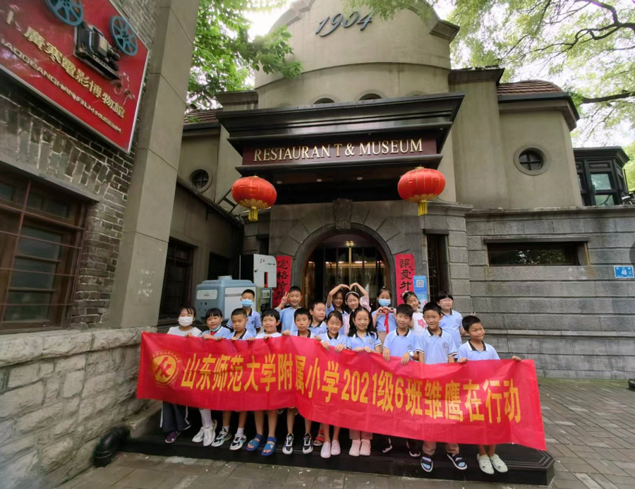 为传承老济南文化、开阔孩子们的视野、进一步丰富孩子们的假期生活、培养孩子们热爱家乡的情感,8月27日上午,山东师范大学附属小学一年级6班雏鹰小队的同学和家长,自发组织游览了济南老商埠建筑,参观了小广寒电影博物馆。