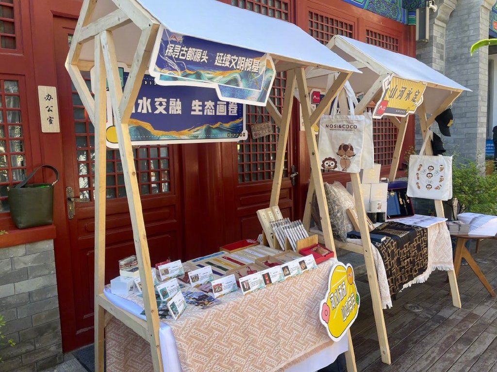 现场展示的文创产品/记者拍摄 北京市文旅局现场发布了10条“美好京西 山河永定”主题游线路,其中有包含坡峰岭,黄山店村和北宫国家森林公园在内的“秋意浓浓看叶游”,包含京西古道,五里坨民俗陈列馆和模式口历史文化街在内的“驼铃声声古道游”等,把西山永定河文化带的历史文化、古道古村、自然山水等文旅资源进行了有机串联。北京市文旅局资源开发处处长张靖介绍: 张靖:这些线路紧扣西山永定河文化带的自然资源和文化特点。我们从春、夏、秋、冬、山、河、日、月,还有古道、研学这10个方面分别做出了10条有特色的线路,把西山永定河文化带的特点挖掘出来。
