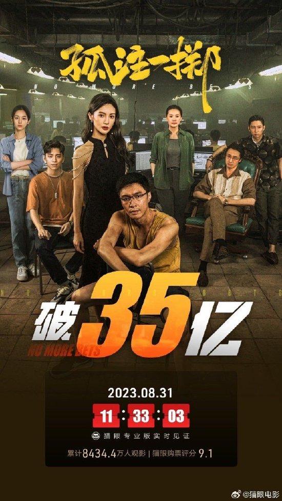 8月31日,据猫眼专业版数据,电影 《孤注一掷》 上映24天 ,总票房破35亿。